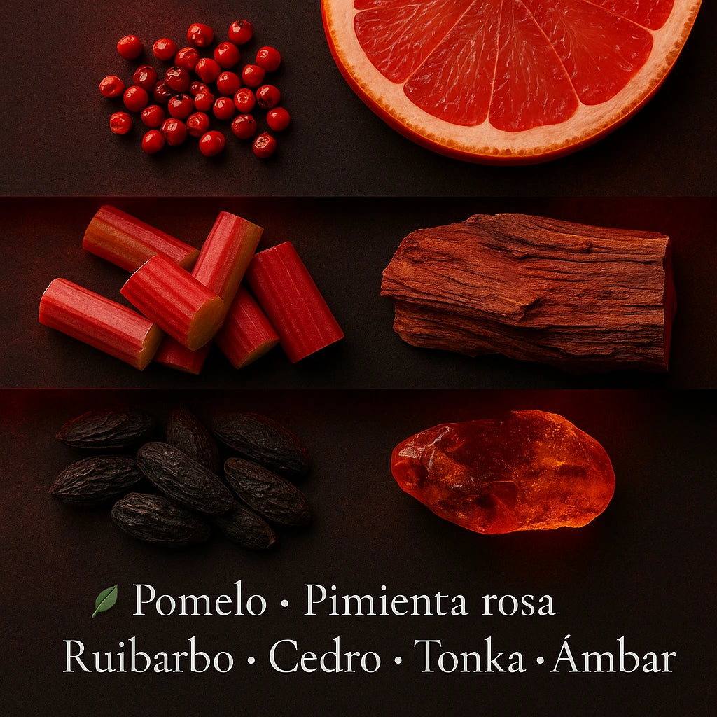- Corazón: Ruibarbo • Cedro • Piña • Notas metálicas