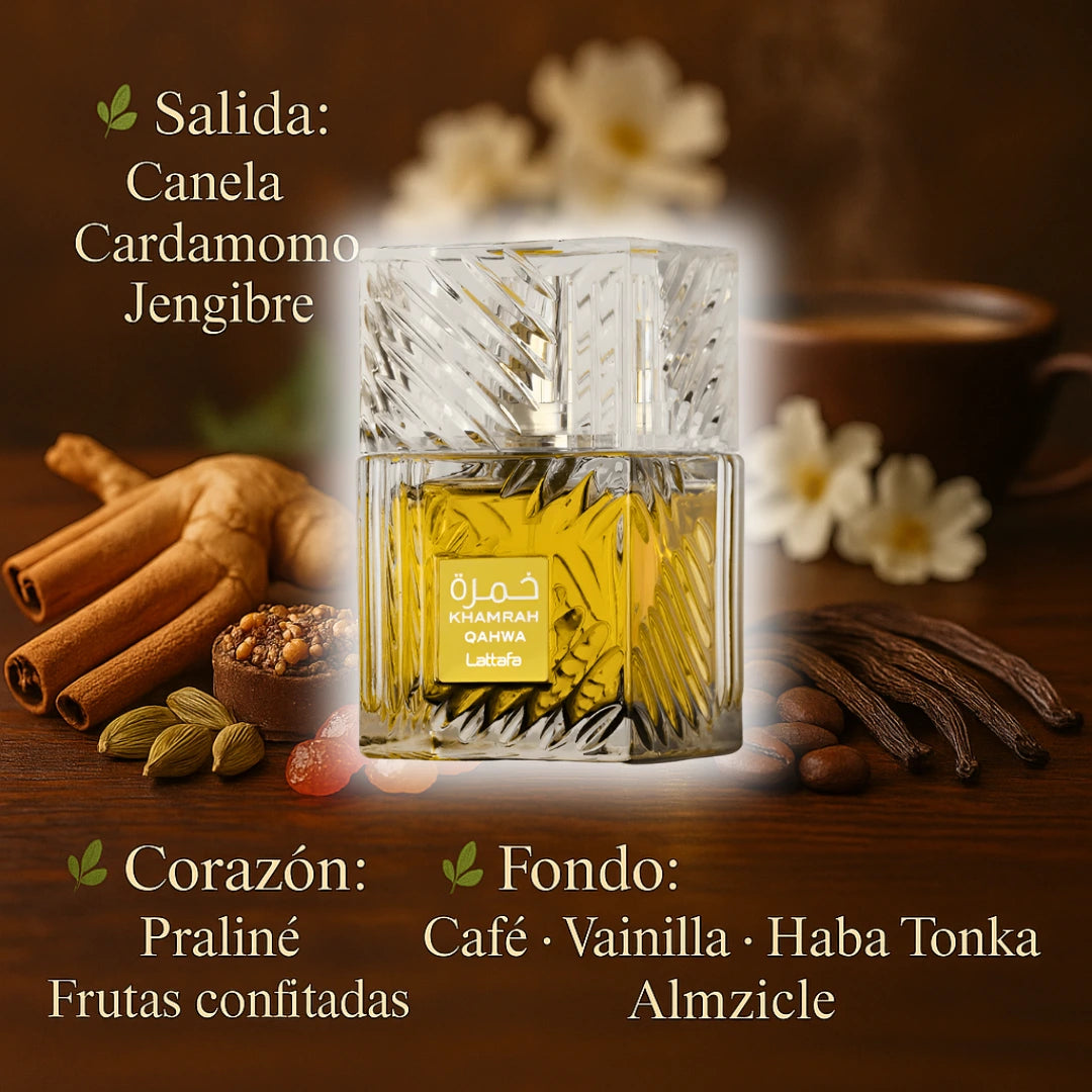 Lattafa Khamrah envuelve con una calidez dulce y sensual que deja una estela inolvidable.